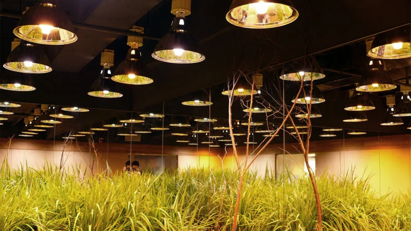 Rice plants at an indoor paddy field in "Pasona O2". Pasona hopes this greenhouse can help promote the pleasure of agriculture to businessmen and businesswomen, and inspire a new generation of farmers.