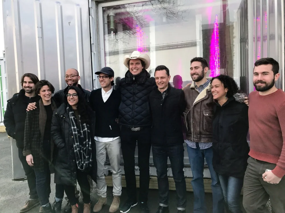 Musk and Peggs (center) with the Brooklyn growers. (Photo by Steven Levy)