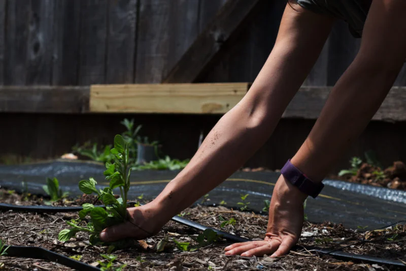 Rodriguez Boughton pulls weeds on her farm, where she grows rare produce for local customers. Lynda Gonzalez/Reporting Texas