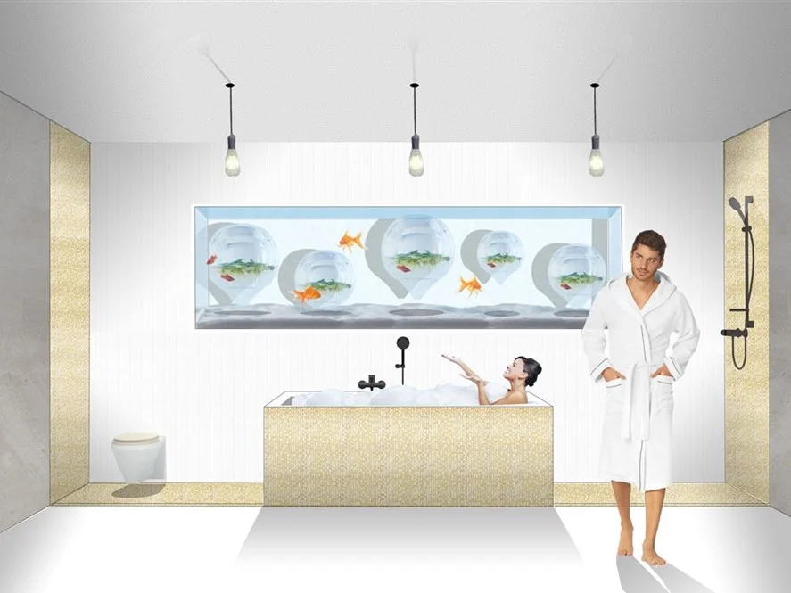 Each room would include an aquarium that would provide water for various flowers and herbs.