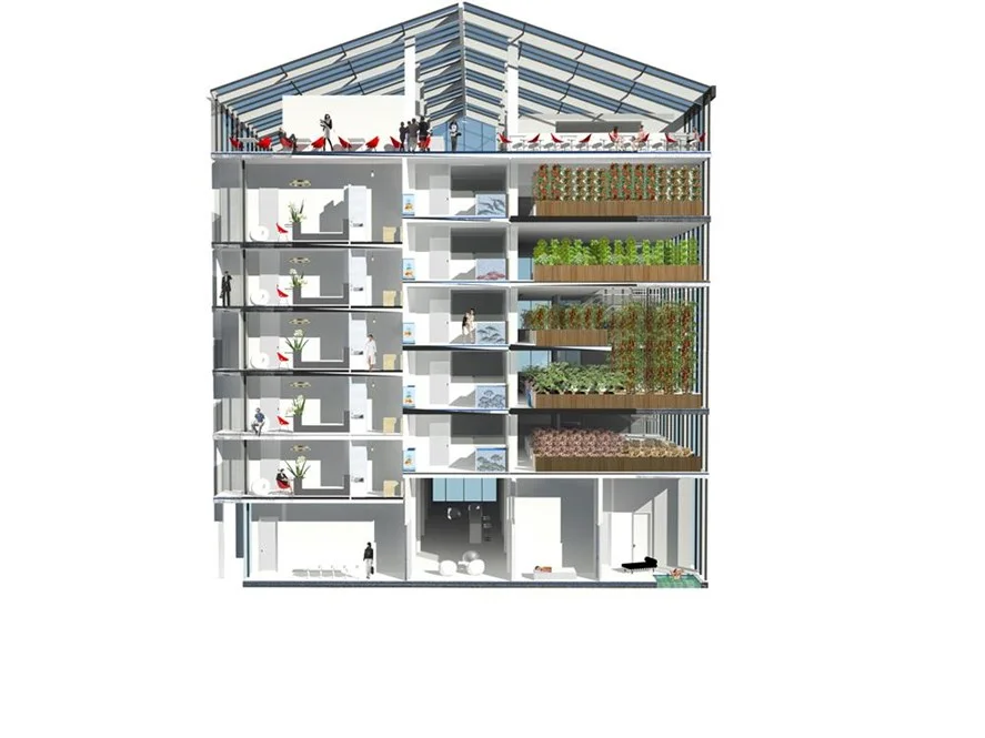 A rooftop restaurant would serve local food, and breeding tanks on different floors would feature sturgeons, crawfish, tilapia, trout, and more.