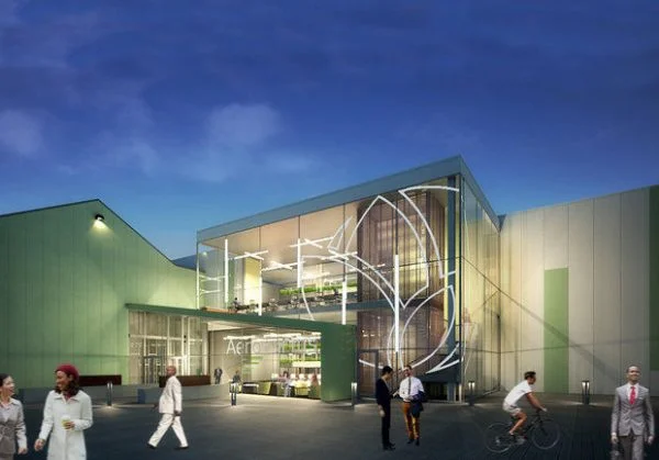 Exterior rendering of AeroFarms factory conversion in New Jersey