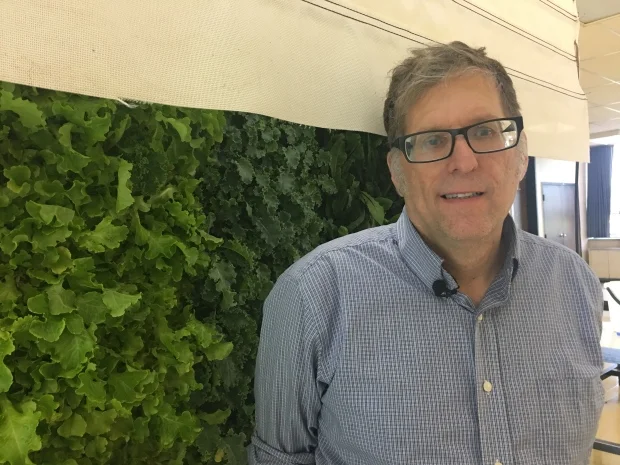 Zale Tabakman, president of Local Grown Salads says each unit is about 32 square feet and grows an equivalent of about an acres worth of food a year. (Stacey Janzer/CBC)
