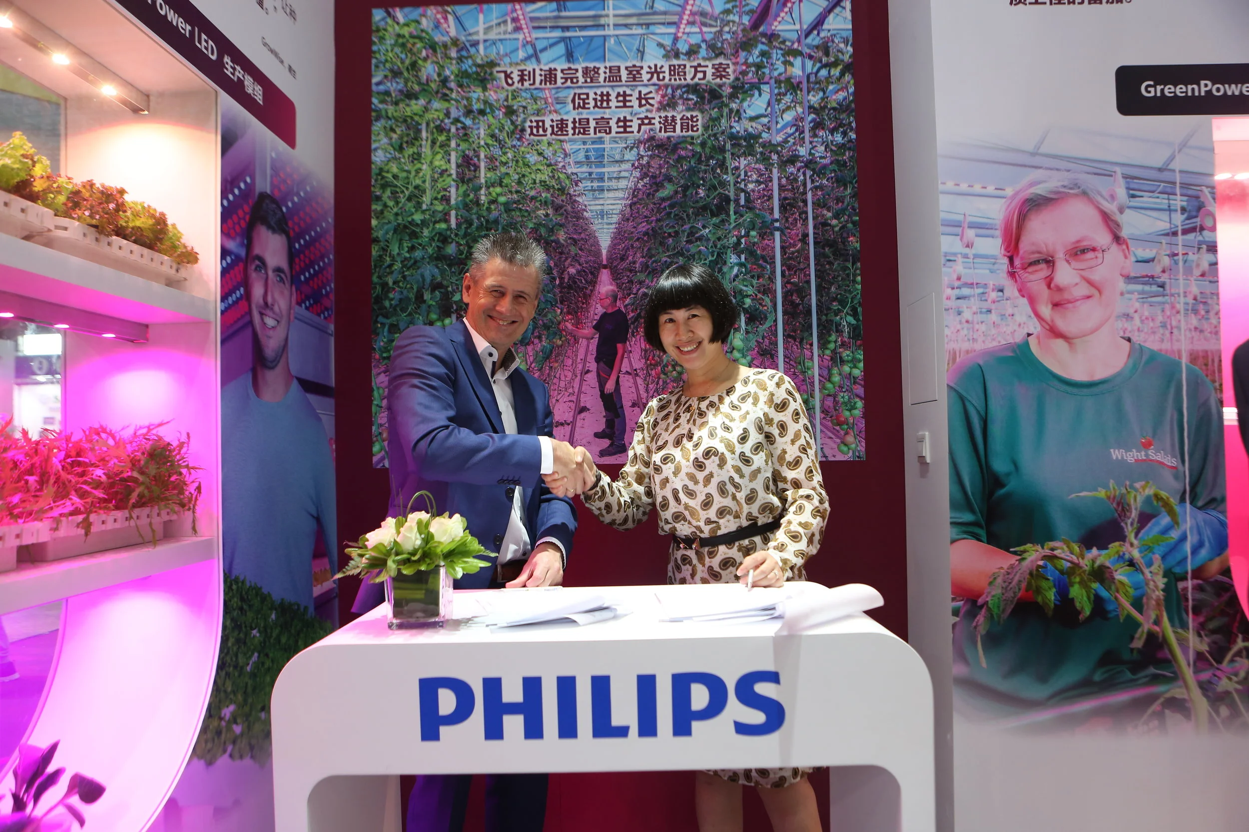 Philips Lighting, a Royal Philips (NYSE: PHG, AEX: PHIA) company and the global leader in lighting, today announced that it signed a partnership agreement with Beijing Oriental Technologies Ltd. (Beijing Oritech) on 11 May 2017 at the 19th Hortiflorexpo IPM show in Shanghai, China. The partners will cooperate closely on projects in the greenhouse segment. The partnership agreement was signed by Wu Shao Juan, vice general manager of Beijing Oritech, and Udo van Slooten, global general manager of Philips Horticulture LED lighting.