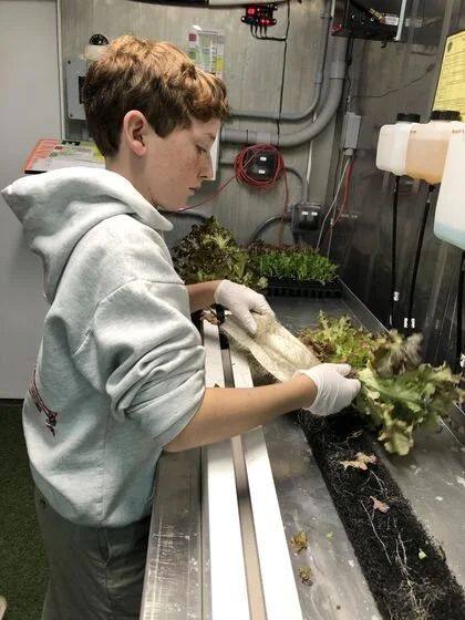 They all love to come in here,” says Emily Poland, who teaches eighth-grade science and is the farm director at this independent school for grades 6 through 12. The Freight Farm and related projects are built into the sixth-grade curriculum, incorporating humanities, social justice, and science, among other subjects. Students spend time there once a week planting, cleaning, and harvesting. Farming is a club activity for the school’s high school students, who can go in during their free time.
