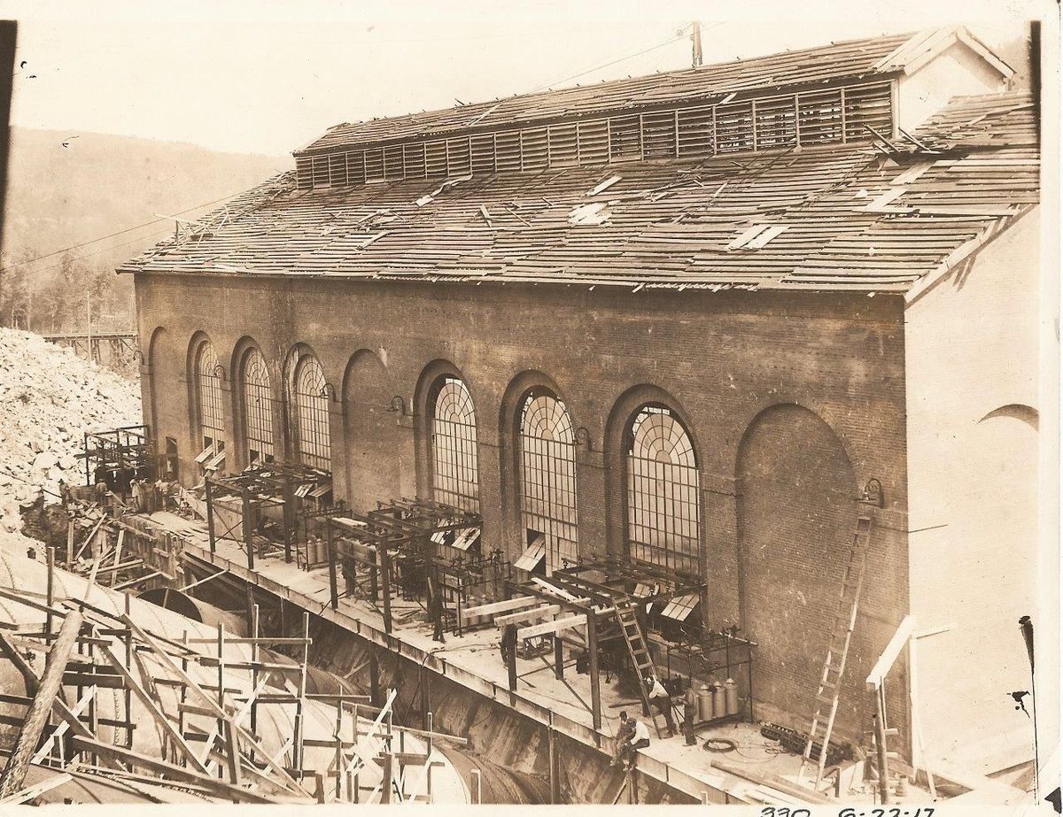 This image shows a view of the Narrows Dam powerhouse under construction in Badin.