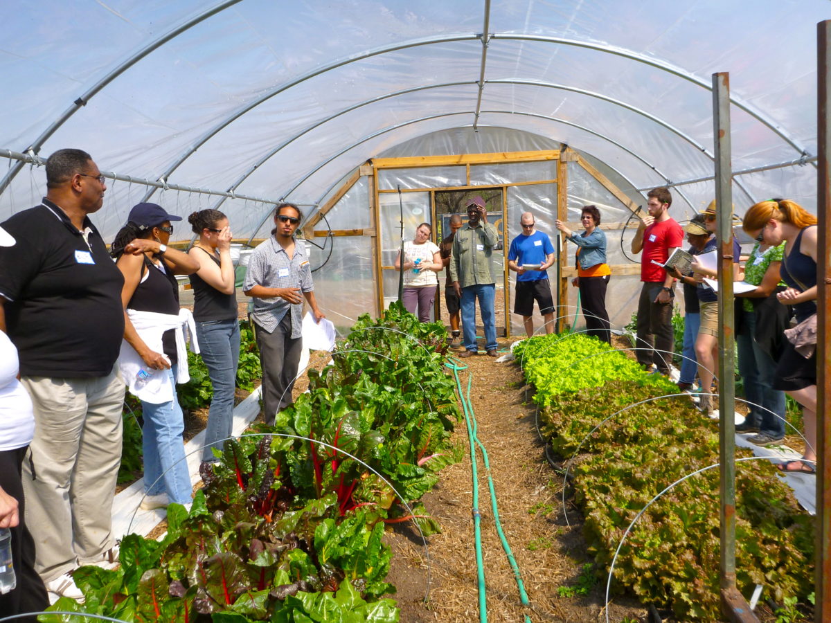 Christian Melendez pointed out that “urban ag, with its ear to the ground, could be a form of preserving and building community.” Melendez, who is Latino, was the lead farmer for many years at ECO City Farms in Edmonston, MD, and recently left to start his own bicycle composting business. “You can automate greenhouses, which has some value, but what kind of culture do we want to build?”