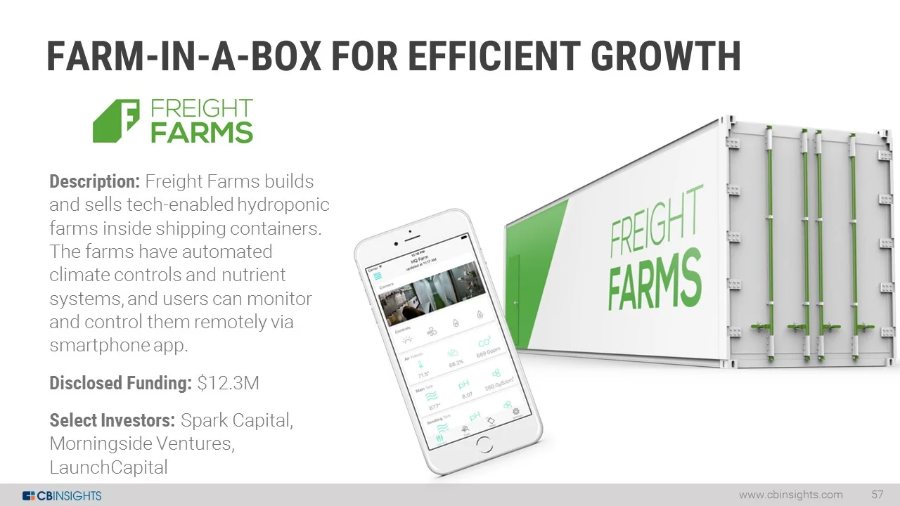 Beyond Plenty, we highlighted startups working on indoor farming technologies in our recent Feeding the Future report. These startups are using AI, IoT, and other new tools along with hydroponic and aeroponic growing methods. Check out a preview below, and download the full report here.