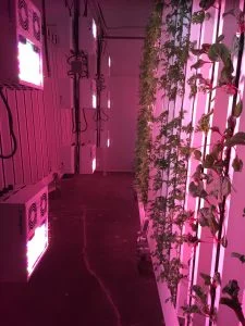 Their growth is spurred by powerful LED lights that sway back and forth in front of the plants. When the lights switch on with a loud click, it’s so bright, you gotta wear shades.