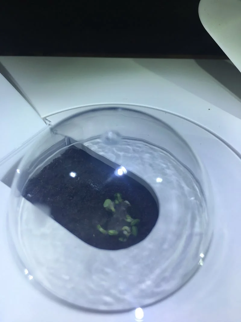 "Grow light cycle is 16h on and 8h off. To avoid running the light at night, plug it in right after waking up!" it said. Thanks for the tip, tag. Given that it was the early evening, I waited until the next morning to plug it in.