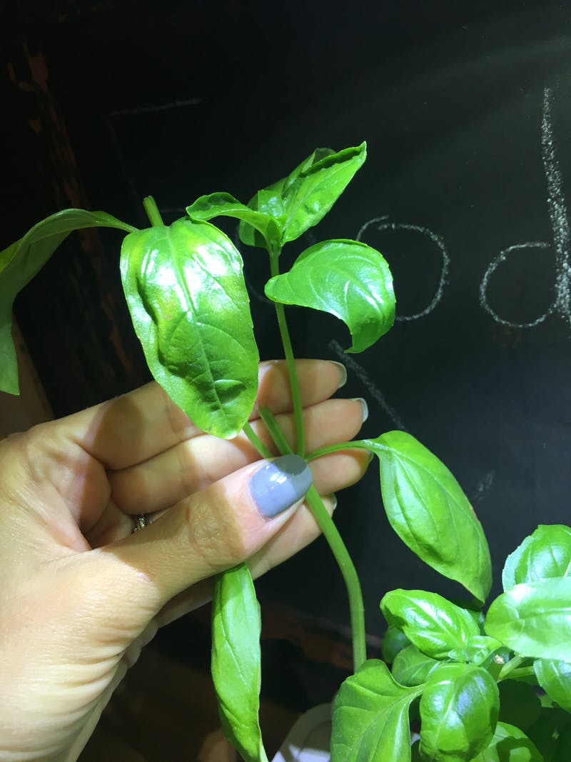 I trimmed some leaves and made the best-tasting, freshest pesto I've ever whipped up. (I make a lot of pesto, but usually with stuff from the grocery store). Within a few days, new leaves were already growing up from the stem.