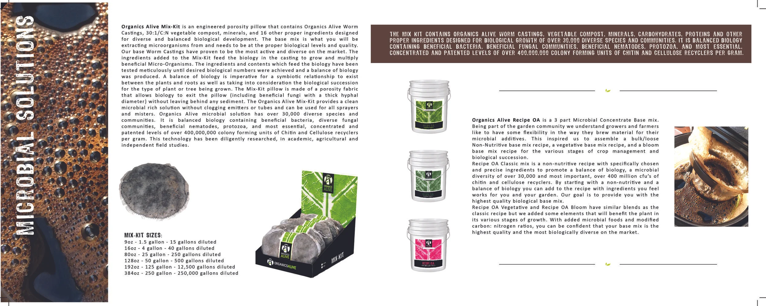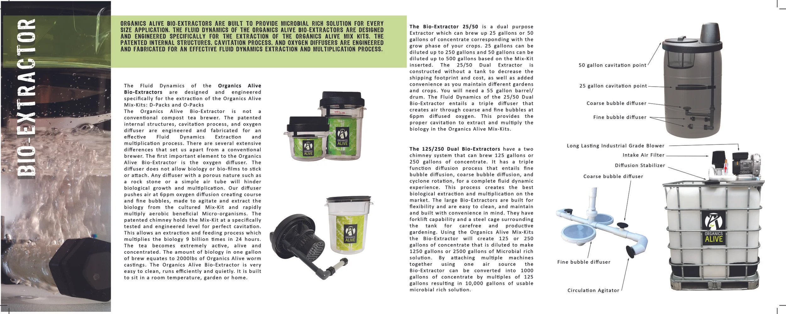 The Organics Alive Product line is all natural and certified organic. We provide a variety of soil amendments to create a soil environment for your plants to thrive in. We also provide an in home Bio-Extractor and Mix Kits, which allows you to brew quality Microbial Rich Solution at your own convenience. Our fermentations provide building blocks such as minerals, Amino Acids, humic and Fulvic acids. We extract these elements from Grain, beans and seeds instead of animal byproduct or heavy mining operations that hurt the environment; and finally, our innovative fertilizers which are derived from microbial extracts avoiding animal byproducts, animal waste and contaminated plant sources. They contain no salts, and are made up of Nitrogen, Potassium, Phosphorus, minerals and contain high amounts of carbon; the basic building blocks of life. Organics Alive provides the most effective garden nutrients on the market today!