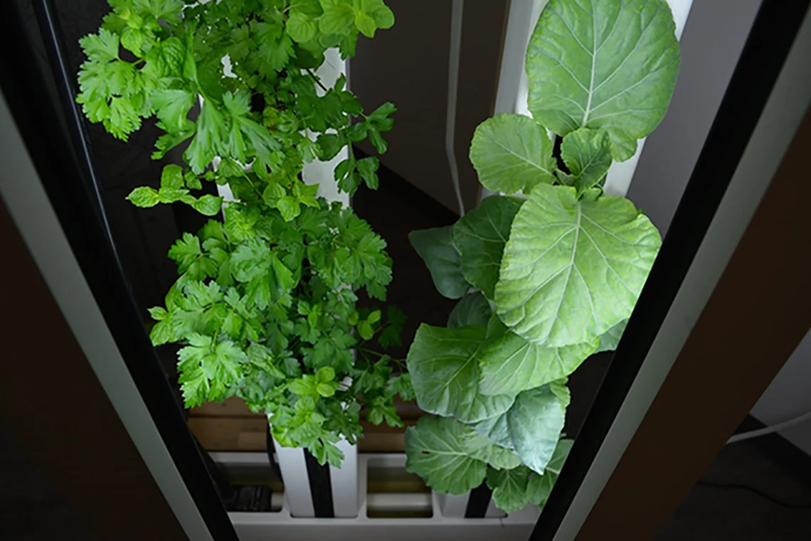 “You can grow pretty much anything,” Jakiela says. “Here, we’ve already grown three different types of lettuce, Genovese basil, joi choi, peppermint and parsley.”