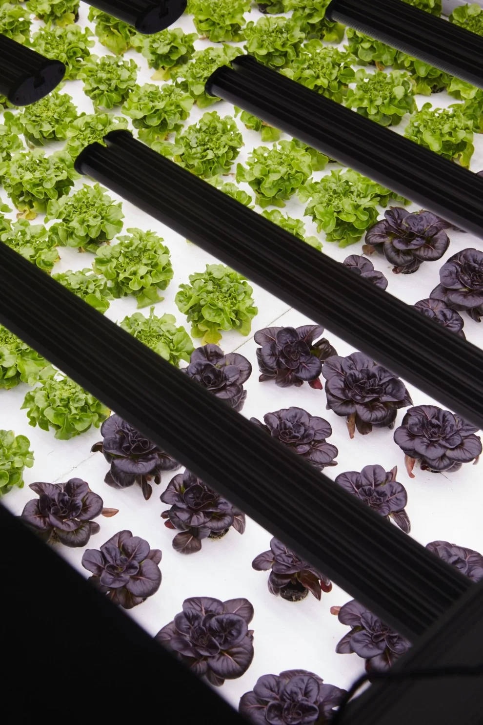 Bowery grows its greens hydroponically in a commercial warehouse in Kearny, New Jersey. The company says its farm requires 95% less water than a traditional farm and uses no pesticides or chemicals — and its location means its greens need to travel less than an hour to make it onto Manhattan restaurant plates.