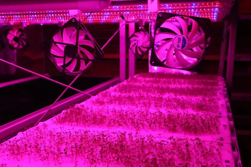 Webb said this is the future of farming and envisions automated indoor farming increasingly supplementing traditional farming. But he said there are still a lot of issues to figure out. Right now, most indoor vertical farms focus on greens and herbs, because they’re pretty hardy and don’t grow very tall. Growing grain, a staple in human and livestock diets alike, is a much bigger challenge.