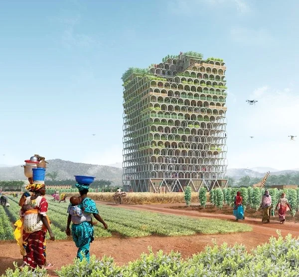 The ingenious structure facilitates the training of subsistence farmers in modern farming techniques. Providing the farmers with inexpensive fertilizers and state-of-the-art tools enables them to increase their crop yields dramatically. The skyscraper also creates a local trading area, which helps to maximize profits. The objectives are self-sufficient farming and overcoming poverty and famine.
