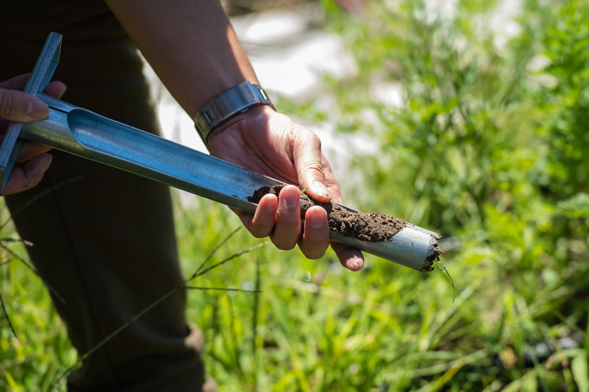 Core samples taken from Hope Farms by Rice University students revealed how well-suited the land is for cultivation. Freshmen in two classes participated in a semester-long project to analyze soil from various places around the 7-acre farm. (Credit: Jeff Fitlow/Rice University)
