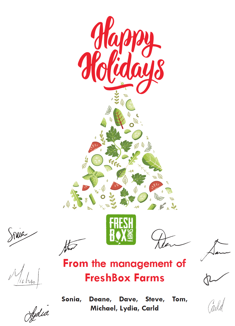 Our team at FreshBox Farms is delighted to have shared another amazing year with our community of leafy green eaters, retailers, distributors, and all those who have supported us on our journey to improve local produce.