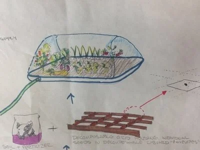 When MacKugler first came up with the concept of Seedsheet, he sketched out the concept with crayons that were handy in the farmhouse where he was inspired by the garden.