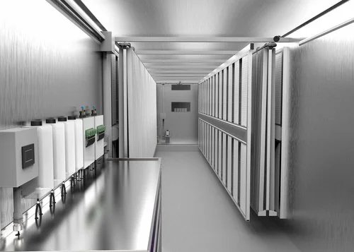 In the past, we sourced used containers and modified them. Now we’re building new containers to our specifications, giving us unmatched control over weather-proofing and R-28 U.S. Department of Energy insulation rating. The R value is the capacity of an insulating material to resist heat flow. The higher the number, the better the insulative properties. This high value lets us operate in all kinds of harsh weather conditions by maintaining the perfect indoor temperatures.