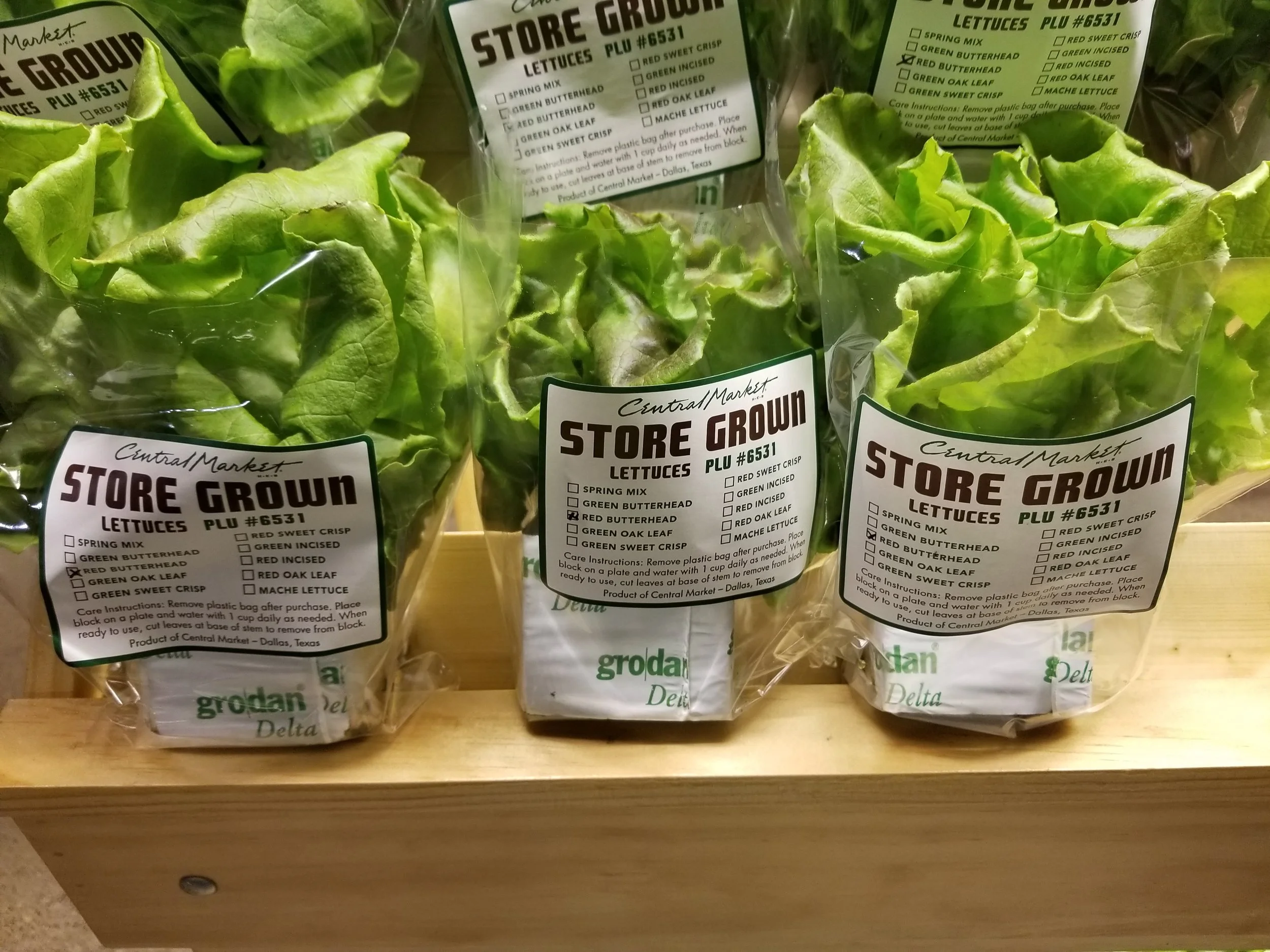 The Growtainer is part of Central Market’s efforts to “produce the freshest, unique, gourmet leafy greens and herbs for Central Market customers at the retail level,” the supermarket said. The hyper-local vegetables are marketed under the label “Store-Grown Produce.”
