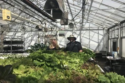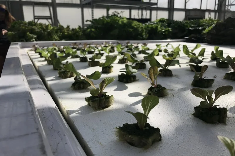 Water tables with LED lights above them provide the plants an environment that can be controlled by Lucas and Chakrin and allow for multiple harvesting cycles. This system allows water to flow directly under and in contact with the plant’s roots without soil or pesticides. The facility uses sustainable practices to produce food all-year-round, with less water and less pollutants than traditional field agriculture.