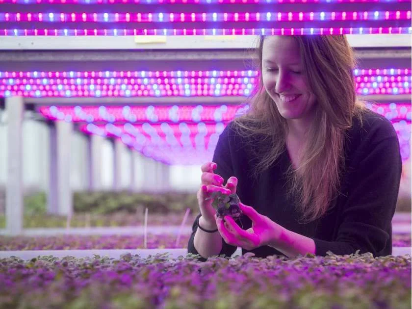 Lauren Rathmell as a look at fresh greens growing of the rooftop greenhouse built by Lufa Farms in Montreal.PIERRE OBENDRAUF / MONTREAL GAZETTE