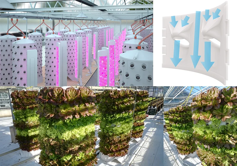 The aponix vertical barrel can be used as growing component like an NFT in an existing liquid nutrient cycle for high density growing.