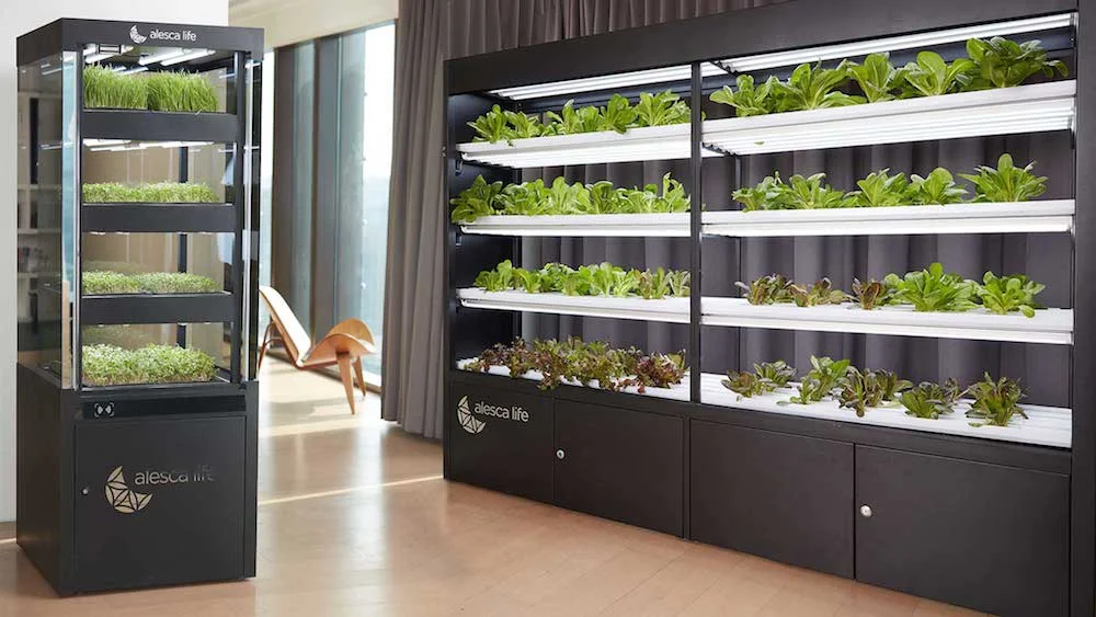 Space farming aside, high-yield urban farms that produce thousands of pounds of food are only one piece of the tech-enabled urban farming puzzle. Other initiatives are focusing on bringing families back into the fold with self-contained farms that are designed for use in small city apartments. Grove Garden combines an aquarium with a garden to create a closed-loop ecosystem: you feed the fish, their water is cycled to water the plants, and the plants grow to feed you. Grove Garden uses one-tenth of the water of traditional farming methods, and it's all remotely manageable by a smartphone app.