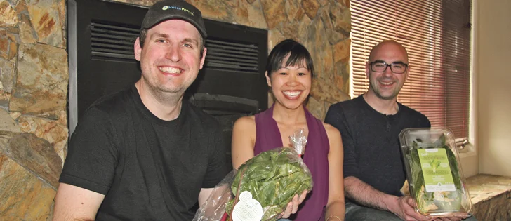 Nutraponics employees include aquaculturalist Geoff Harrison, left, plant specialist Stephanie Bach and CEO Tanner Stewart. The company grows fresh produce at its facility near Sherwood Park, Alta. | Barbara Duckworth photo