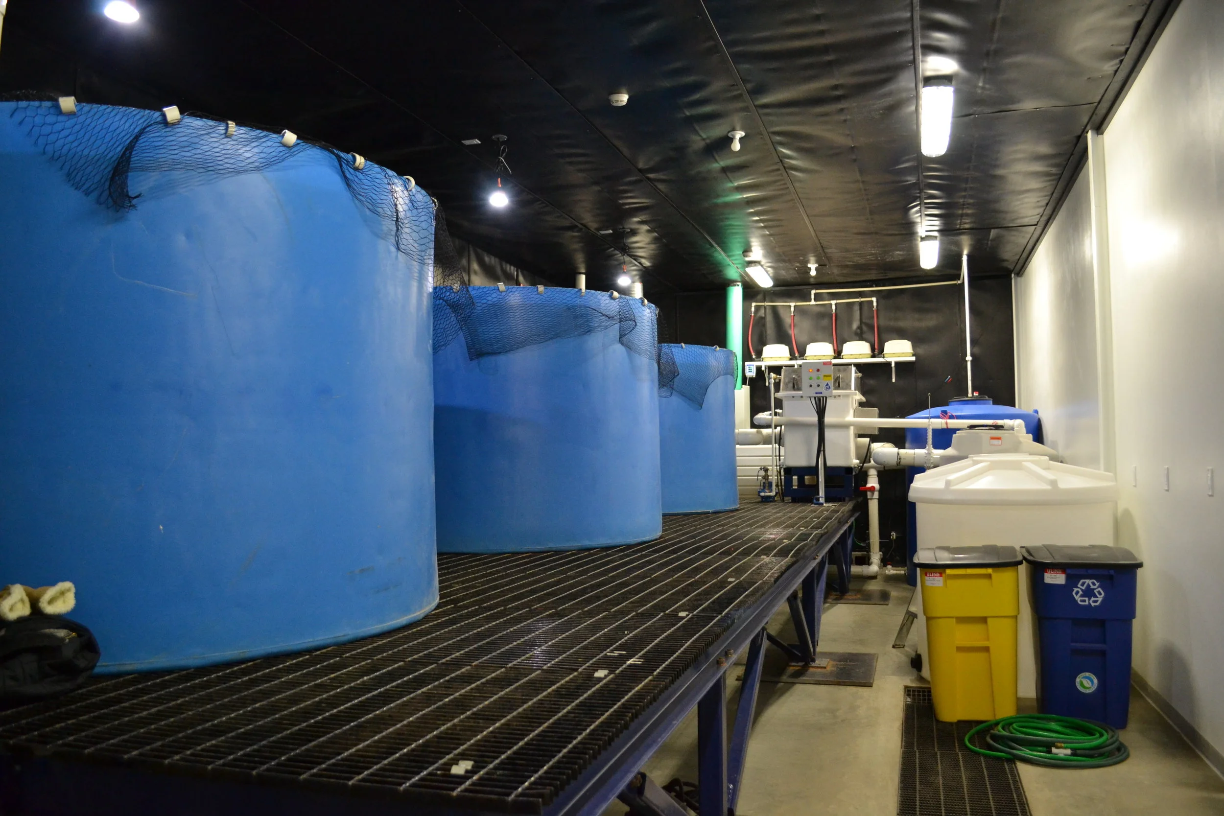 This farm is considered a demonstration facility, where staff can research the best use of the fish, water and plant development.