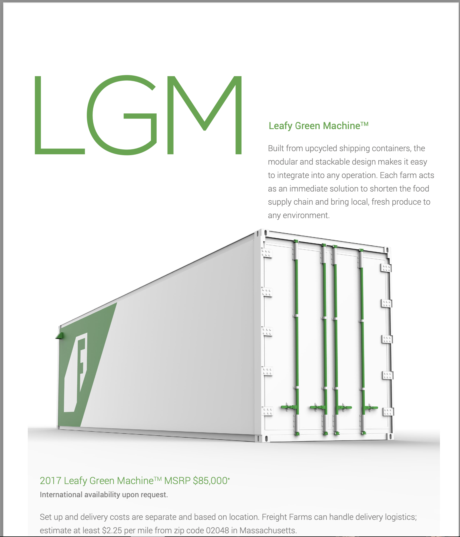 2017 Freight Farms Leafy Green Machine Brochure Container FarmContainer Farm For SaleContainer FarmingContainer GreenhouseControlled Environment AgEducationFarmFarmingFreight FarmsGAPGrowing SystemsIndoor Ag TechnologyIndoor HydroponicIndoor Vertical FarmingLEDLightingshipping container farm Oct 16 Written By IGrow PreOwned Freight FarmsHydroponic farmShipping conatiner farmShipping Container FarmLeafy Green Machine IGrow PreOwned https://www.igrowpreowned.com/