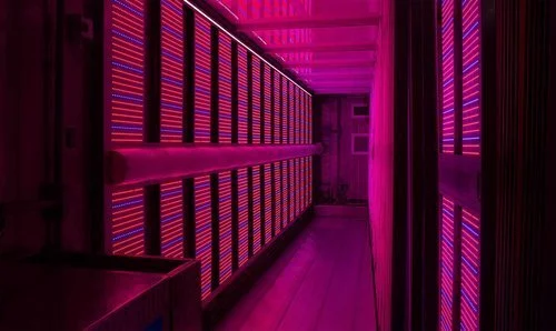 5:1 red/blue LED lighting optimized for green leafy growth.