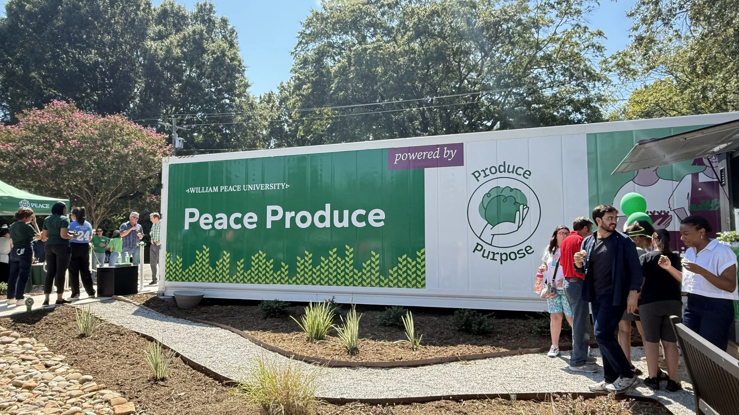 The urban farm is housed in a container by Freight Farms, and was established by Produce Purpose Executive Director Matthew Harvey, who, along with his father Duke, dedicated the project to the memory of his late brother Patrick, a William Peace alumnus, according to the university.