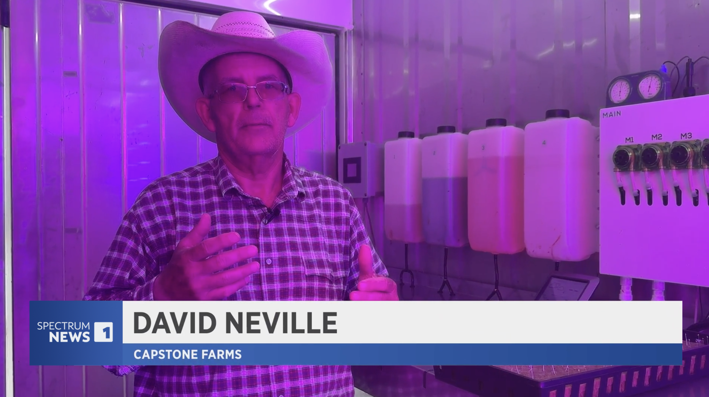 Kentucky native David Neville is currently growing lettuce in an indoor vertical farming house. The owner of Capstone Farms says crops are used for school lunches.