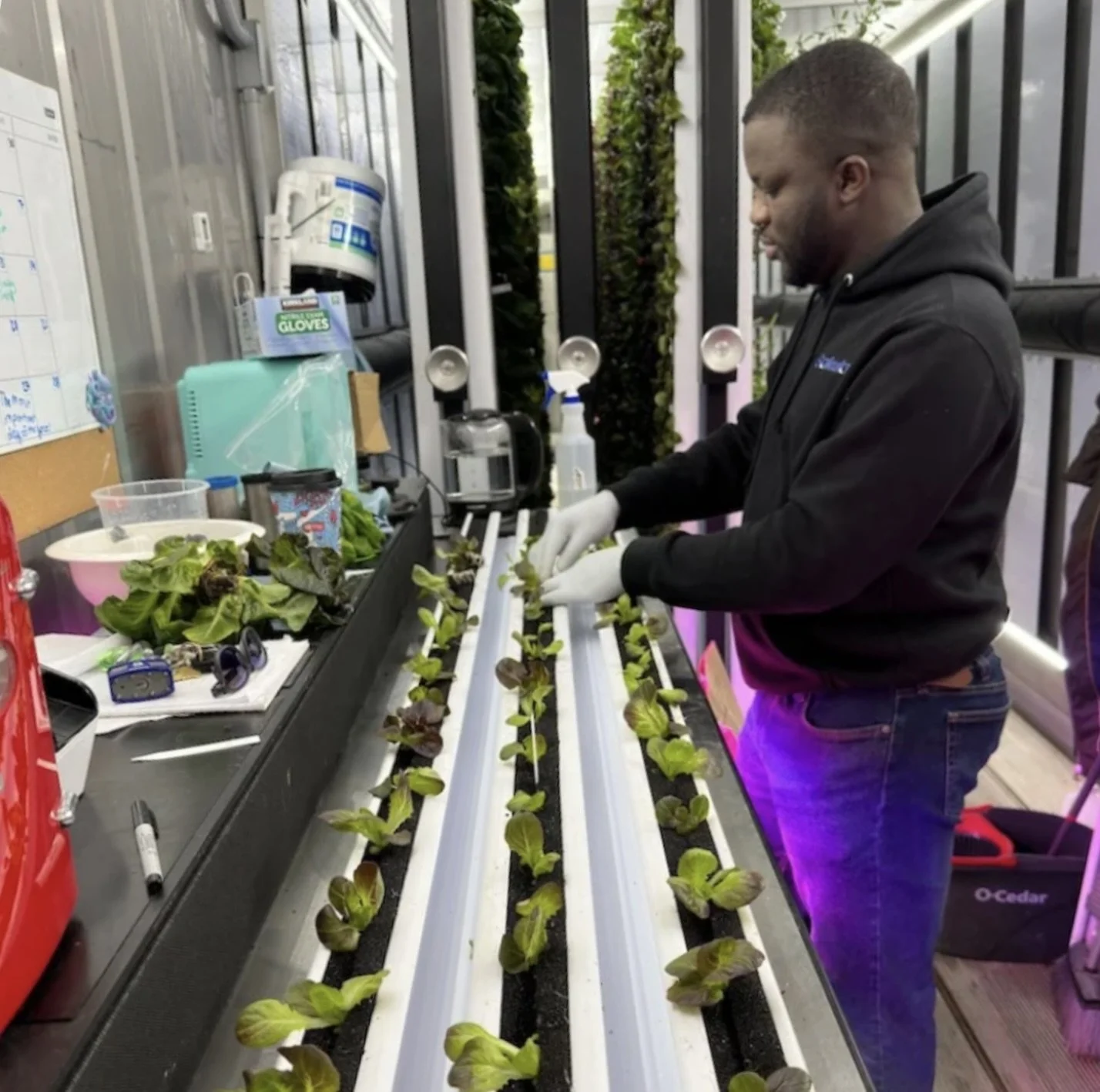 Currently, students in the program are using their skills to grow a mushroom and lettuce farm in a 40-foot storage container.
