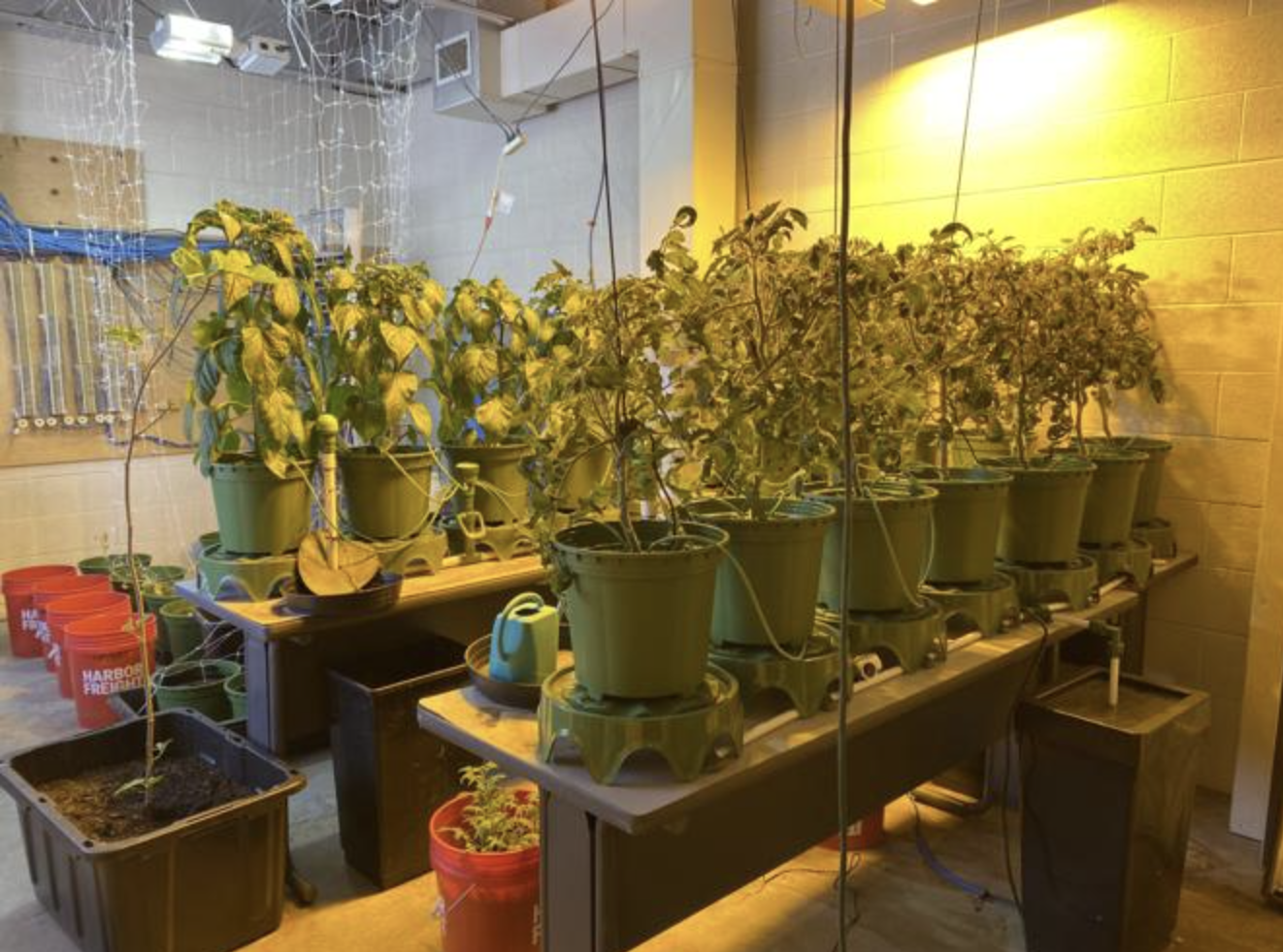 The farm grows food inside by utilizing hydroponics, a system that grows food through water. They have grow towers set up that utilize water and nutrients to grow plants. They’ve also found numerous ways to utilize the outdoor space.