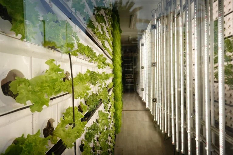 At such "farms," vegetables can grow vertically on the walls of their containers, which increases growth efficiency, minimizes water consumption, and reduces the use of excessive soil.