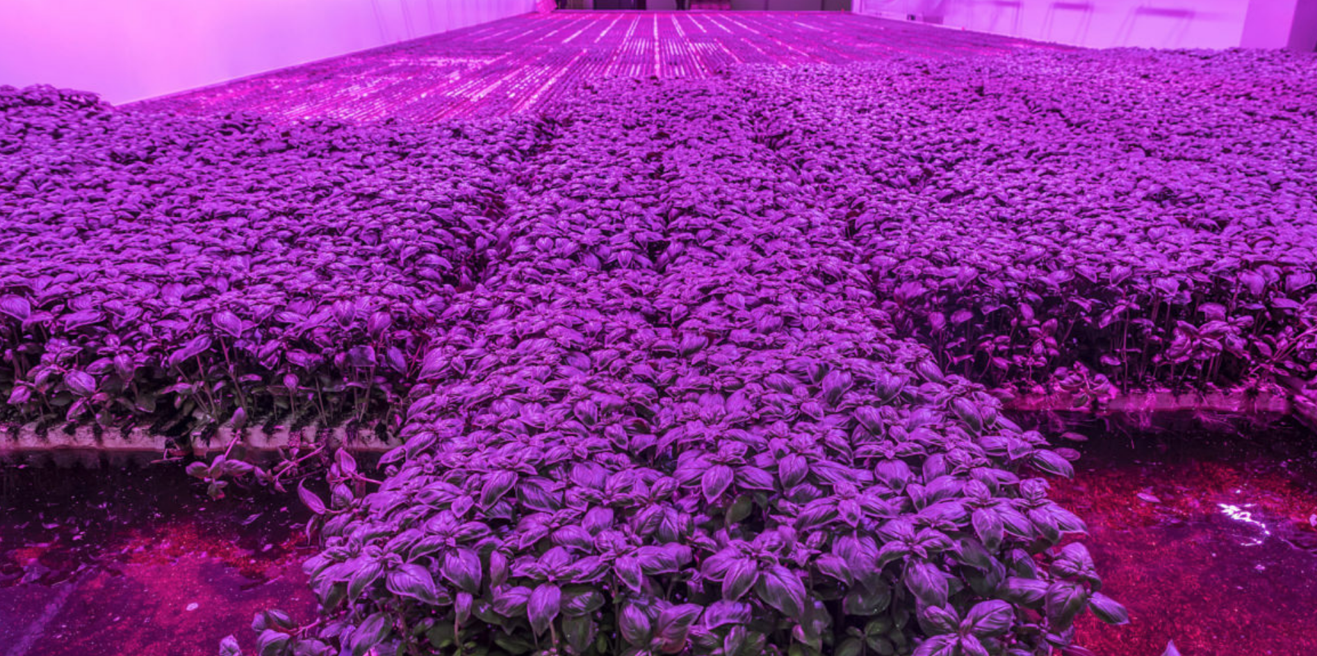 Here, basil grown at PlantLab in Amsterdam goes from seedling to supermarket shelves in two weeks.