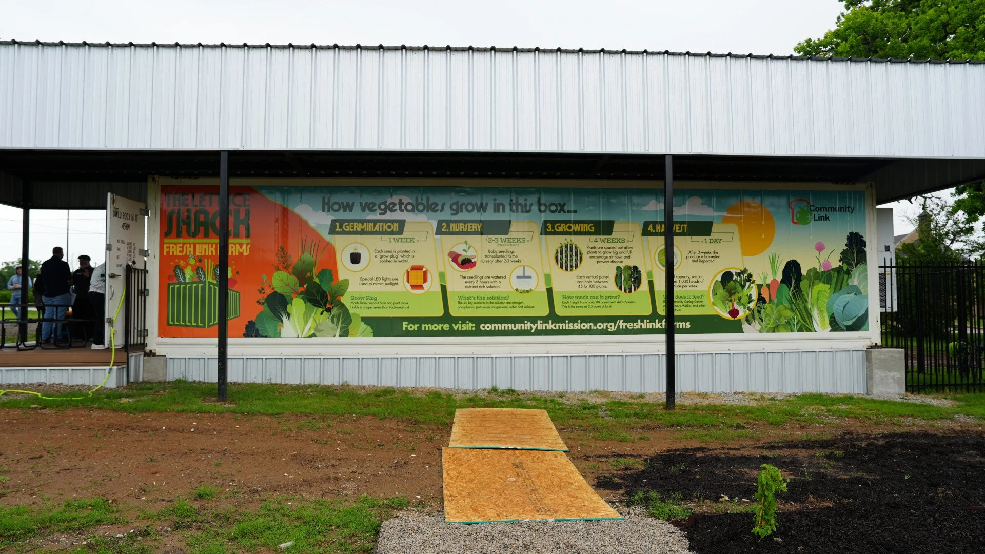 Born from three churches united against hunger, Community Link started in a 1,000 square foot house and has grown into a 10,000 square foot facility serving over 22,500 families. On Saturday, the public was invited for a first look inside Fresh Link Farms, where the nonprofit is fighting hunger through hydroponic shipping container farming. Through a partnership with Cook Children’s Health Care System and the American Heart Association, Fresh Link Farms will be able to provide even more fresh food for families.