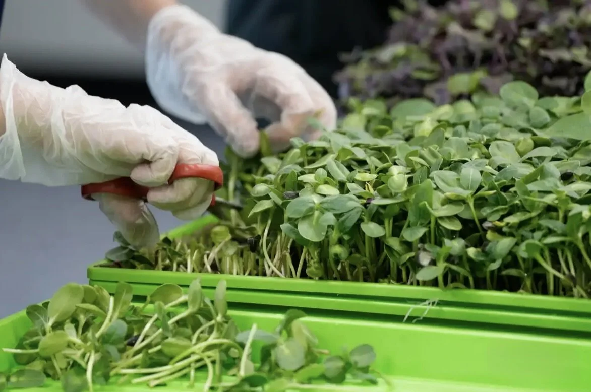 Zoey Seltrecht, 17, cuts recently harvested micro greens while participating in Germantown High School's Flex Farm. "The lettuce that we used to get came from miles away and now this is saving lots of energy," she said.