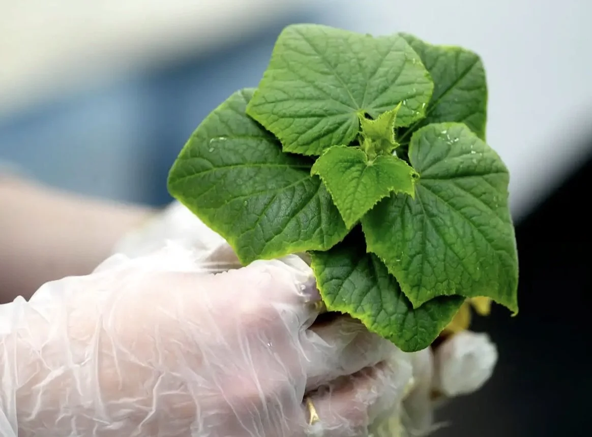 Hannah Leinbeck,16, holds cucumber plant that will continue to grow in Germantown High School's Flex Farm. Flex Farm is an indoor mobile hydroponic farm.
