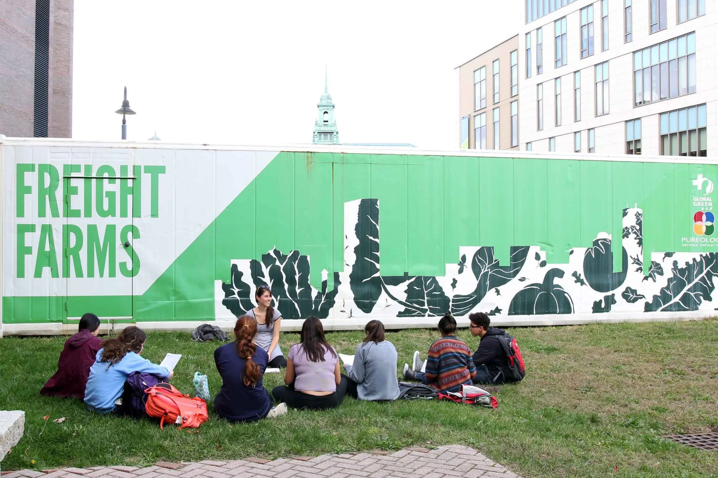 The Freight Farms team can help you paint the farm a neutral/camouflaging color, or you can build a trellis, wall, or other structure to hide it from view. When you meet with the zoning board, bring mock-ups of your plan.