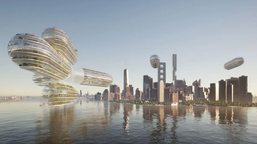 The proposal, called Aeroponic 2100, envisions dirigibles that fly through towns, cities and residential spaces distributing food where it is needed